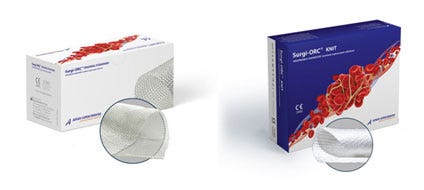 Surgi-ORC KNIT-Suture-friendly and suitable for bleeding control in laparoscopic and transplant surgeries.