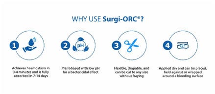 - Surgi-ORC®: Plant-Based Hemostatic Solution (Oxidized Regenerated Cellulose)