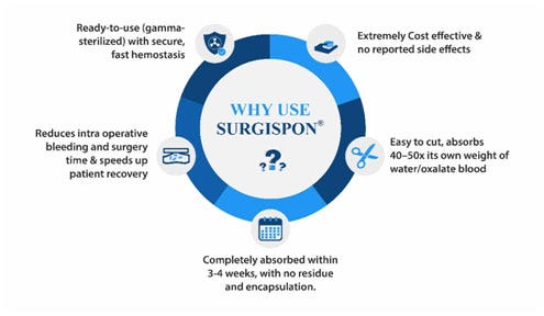 Rapid and effective bleeding control is essential to minimize blood loss and ensure better surgical outcomes. While conventional techniques like manual pressure, suturing, ligation, clipping, and cauterization are commonly used, they may not always be sufficient or feasible in every case. In such cases, advanced hemostatic agents such as SURGISPON®, FLOGEL®, and SurgiORC®play a crucial role in managing bleeding efficiently and safely during these critical procedures.